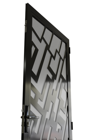 The Altitude is our showstopper door design. The architecturally designed angled pattern starts from a more solid base and slowly dissipates into a more open design as the eye moves up and throughout the door. Gorgeous flowing design that not only creates a statement piece but is uncompromising on strength and security.