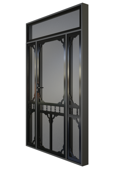 The Armadale steel porch enclosure is designed for a Heritage or Edwardian home with a large leadlight glass panel within it. This design will highlight both the wooden door and the glass panel.