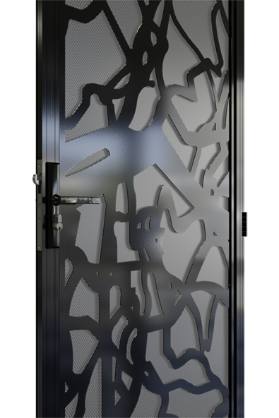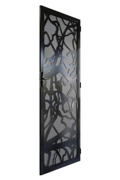 The Armstrong Creek aluminium security door is a beautiful statement piece for your entryway. Laser cut steel is shaped into an explosive pattern that feels unique while maintaining excellent security. The beams are cut in a variety of thickness options giving excellent strength while maintaining the design inspired by unique natural webbing and cracks.