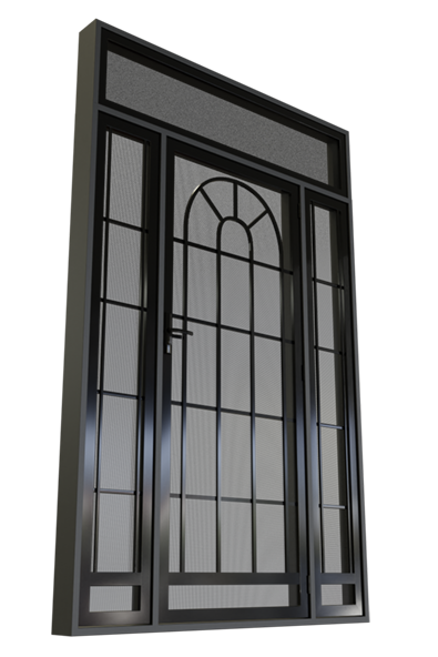 The Bentleigh Steel porch enclosure features a prominent arch within the door's frame. A striking image from the street view, make a statement with this secure and special look.