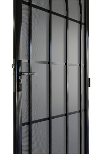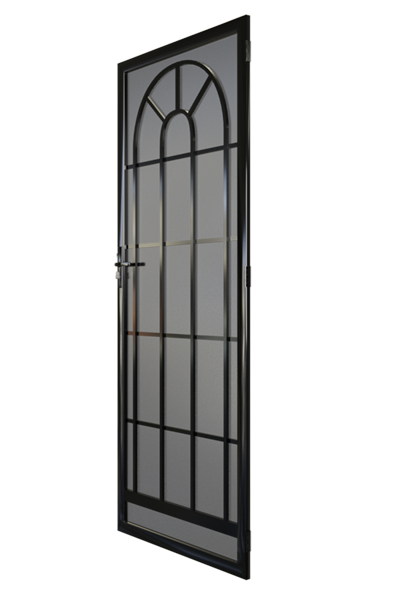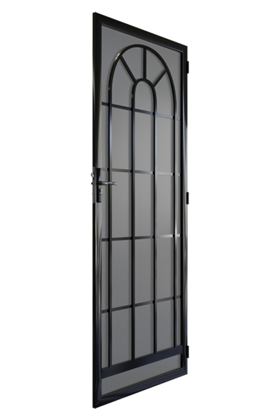 The Bentleigh Steel Security Door features a prominent arch within the door's frame. A striking image from the street view, make a statement with this secure and special look.
