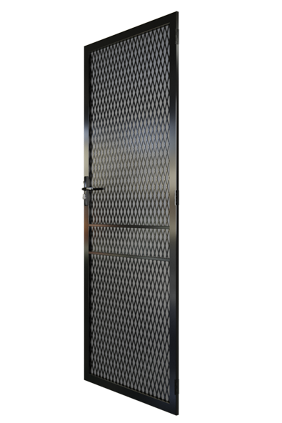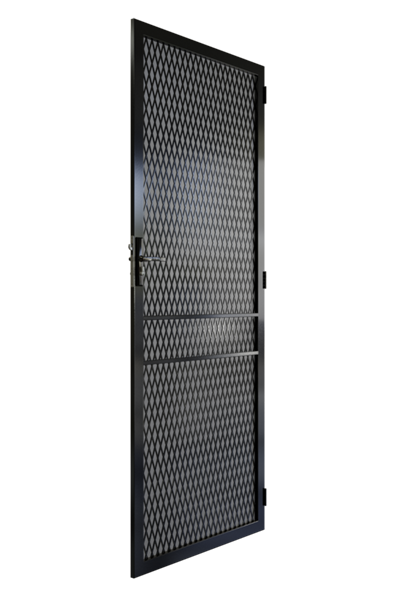 The diamond grill pattern of the Kensington steel door is a well known security door choice for your own. The smaller diamonds ensure no one can reach through the door and maximise safety. The cross bars are double strength and the design welded into the frame for a clean finish.