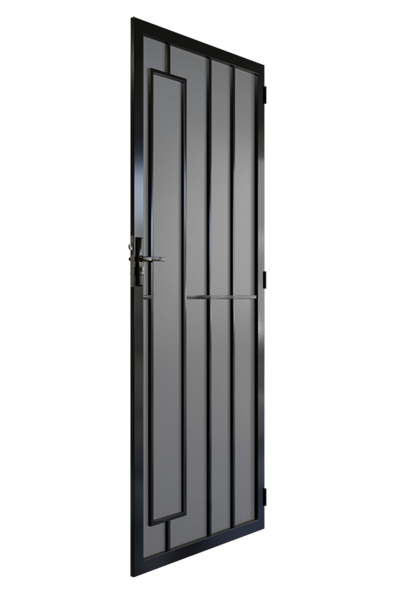 The Maribyrnong steel security door is a fantastic design purpose made to suit any timber door with a single long glass panel in it. The design can either made left or right handed to suit the glass panel in your door. The Maribyrnong has also been used on a lot of homes, even without any glass panels. Due to its clean lines and character it works on any modern home.