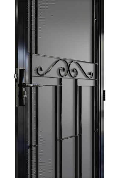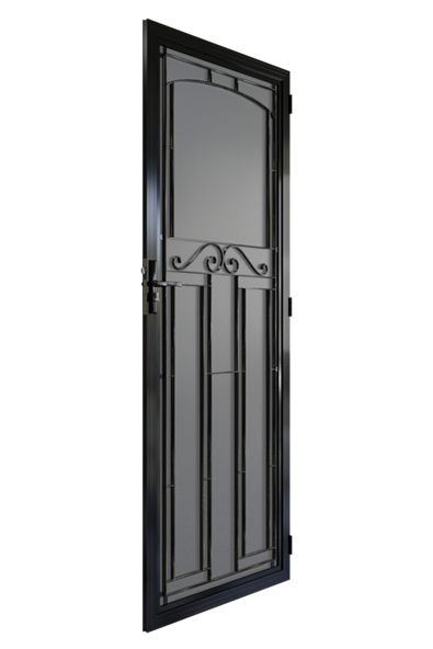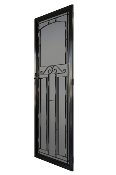 The Northcote aluminium security door does an excellent job of accenting doors with a feature leadlight window accompanied by cricket bat panels below. But it doesn't hide in the doorframe, the delicate central scrollwork means that it makes a statement in and of itself. It's a hugely popular design in our range and the class, elegance and strength it supplies is why.