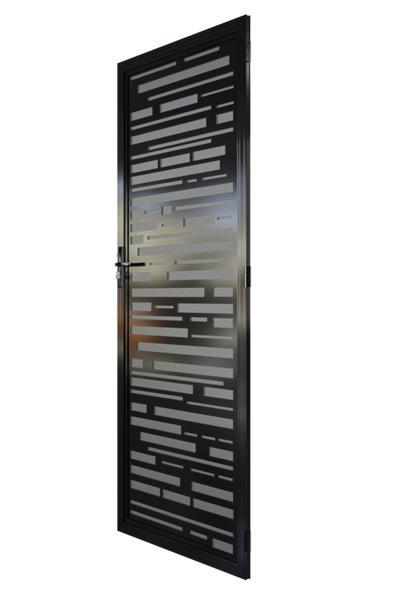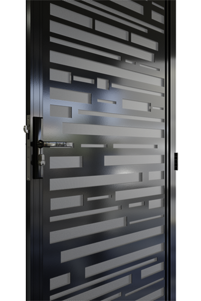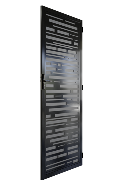 The aluminium, laser cut Officer security door is an ultra-modern barcode design that is laser cut out of a singular sheet. With so much of the sheet preserved within the design this arresting design is also incredibly strong. A timeless option for your entryway that will suit any style of home.