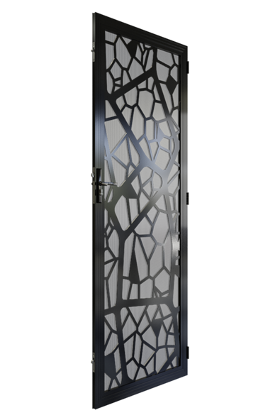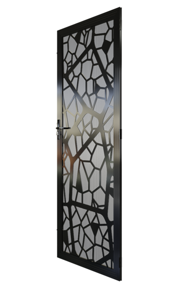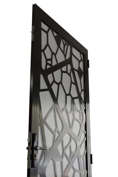The Outback Crimsafe security door is a modern take on natural influences. The laser cut design creates the illusion of layers and gives the door a depth of design. Interspersed solid segments break up the lattice design and create a really unique piece.