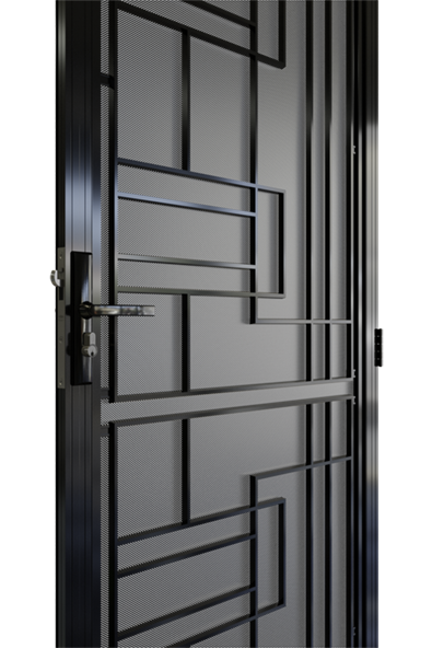 Material Specs | 70 mm Heavy Duty Security Door Frame, Feature Design Cast Aluminium Panels |