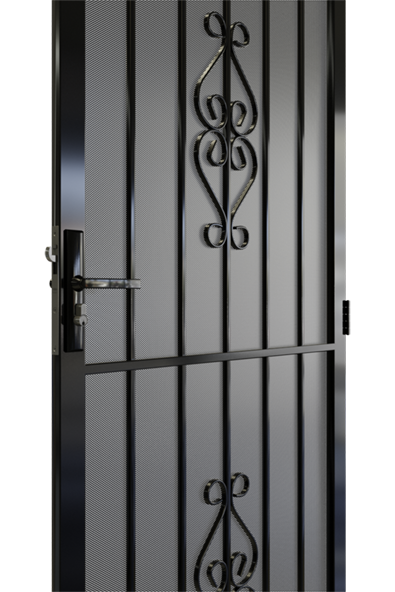 The Prahran is a classical steel security door working well in anybody's home. The clean straight lines and it's wrought iron scrolls will be a great addition to your home as well as creating a very strong door. The Prahran offers strength and elegance at the same time, a great choice with classical look and charm.