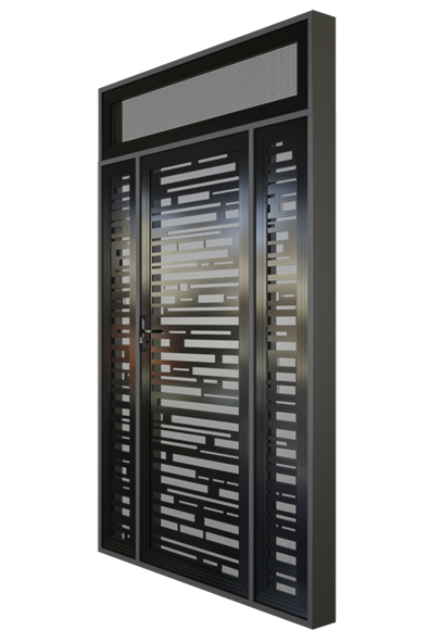 The Reflection Crimsafe porch enclosure is an unbeatable choice for the security of your home. The laser-cut barcode design allows for airflow and light while maintaining maximum privacy and strength for the interior of the home. This modern design will blend in beautifully to any contemporary home.