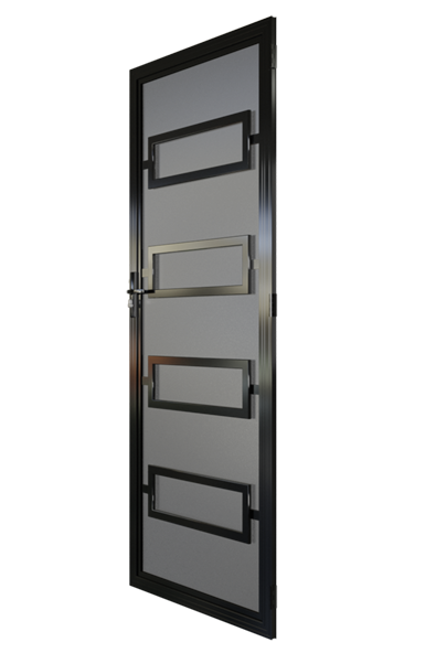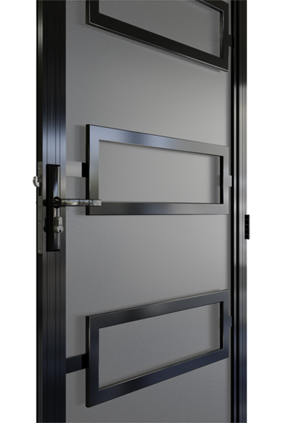 The Rosanna aluminium security door has been made to suit any modern home or timber door with horizontal glass panels it. The rectangular boxes stand out and create a small 3D effect so they are the focal point of the design. The Rosanna will blend seamlessly into the façade of your home while adding that touch of class.