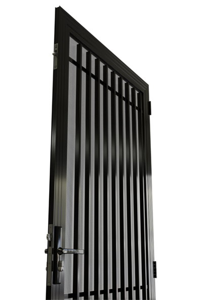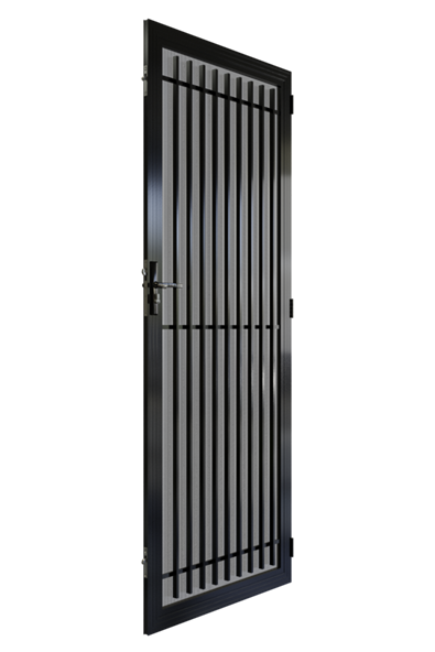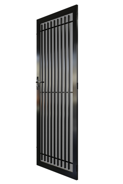The South Melbourne Crimsafe has been designed to add a little something extra to a normal Crimsafe plain door. The arrangement of the vertical and horizontal bars creates that little bit of depth that makes it just a little more eye-catching. It will suit any modern home or timber door with horizontal glass panels. The South Melbourne security door will blend seamlessly into the façade of your home while adding that touch of class.