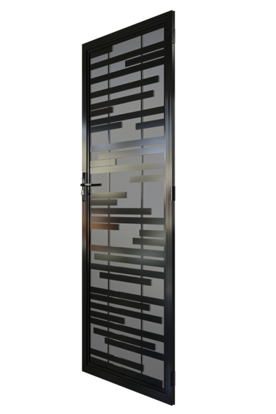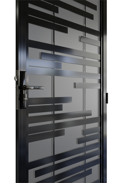 The Strathmore laser cut security door is a very popular aluminium security door because of its sleek horizontal broken panels that are interspersed to draw the eye over the whole door. This is an excellent modern design that lets your doorway stand out from the crowd without dominating the aesthetics of the building. It's not easy to be both eye-catching and blend in but the Strathmore achieves it!