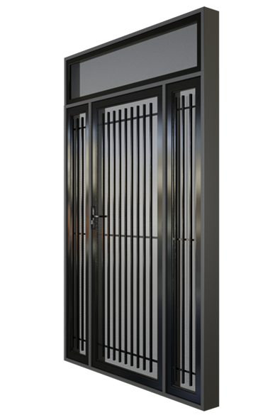 Created with a minimalist design criteria in mind this super cool design will totally transform anyone's home. The particular spacing of the clean vertical lines creates a 3D effect that most porch enclosures lack. This door will draw the eye and make a statement while still maintaining that minimalist presence.